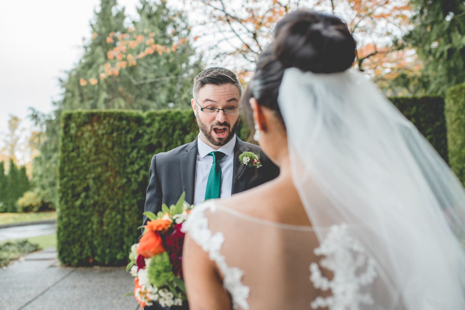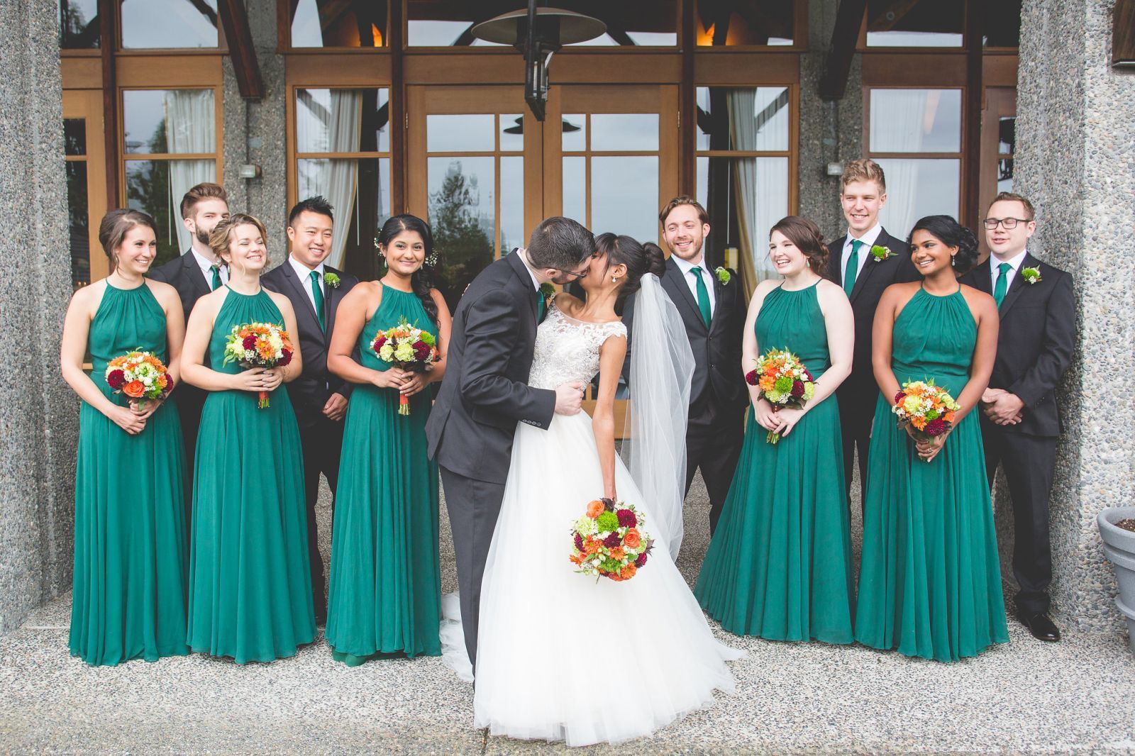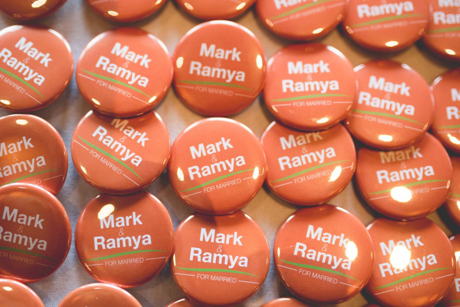 The groom and I both grew up in Coquitlam and our parents still live there, but we never met until much later, when neither of us were living there anymore! It meant a lot to us to get married in the town we both grew up in, at the Westwod Plateau Golf and Country Club. The groom and I planned the wedding ourselves and we were so proud to work together on it! Our theme was "Let's get Political" so we had political buttons for the guests to wear that said "Ramya and Mark for Married". We also had guests "vote" for our first dance song (We gave them 5 cheesy song options) and created a Google poll so guests could vote beforehand. "Kiss from a Rose" by Seal ended up being the winner! We had Kicking Horse Coffee as the wedding favours (We both LOVE coffee) and put similar "Mark and Ramya for Married" political themed stickers on each package!